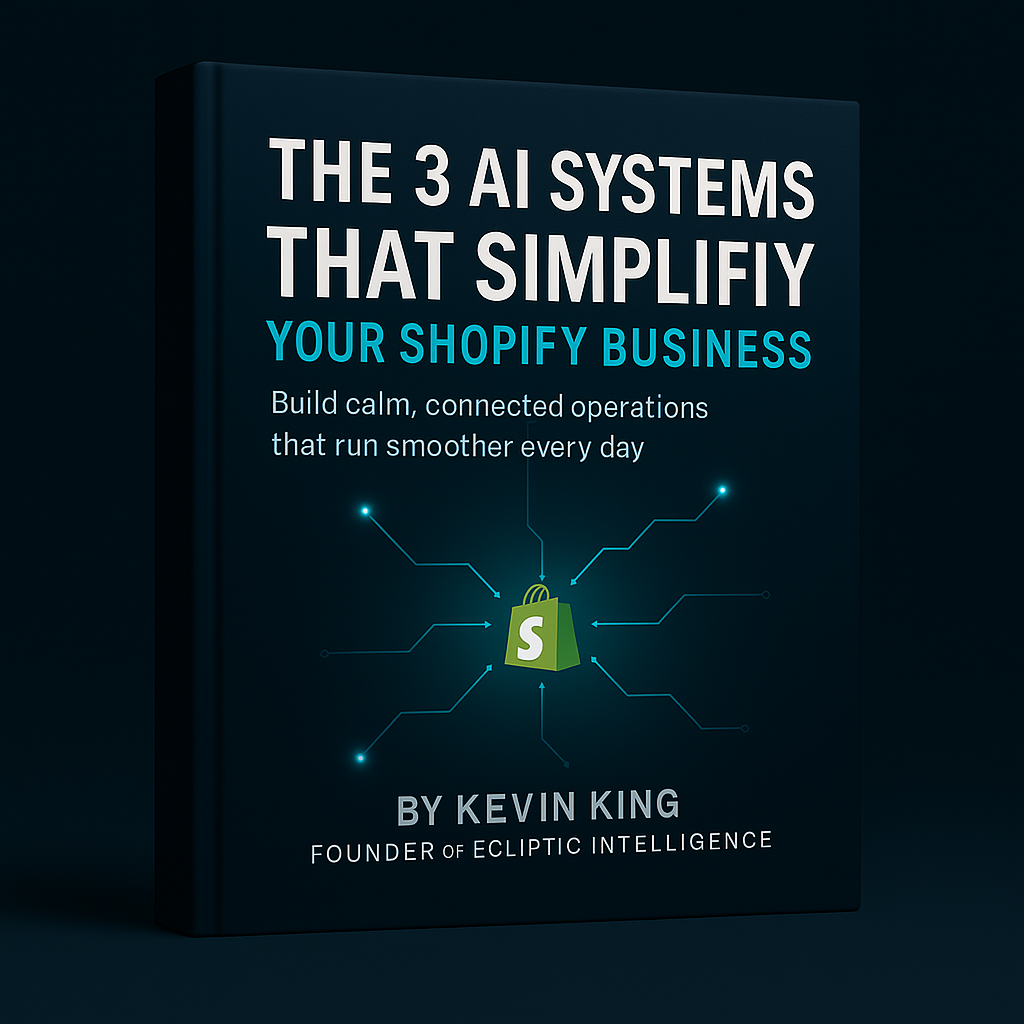 Tired of chaotic Shopify days? Learn the 3 AI systems that bring calm control to your store — even if you’re not technical.